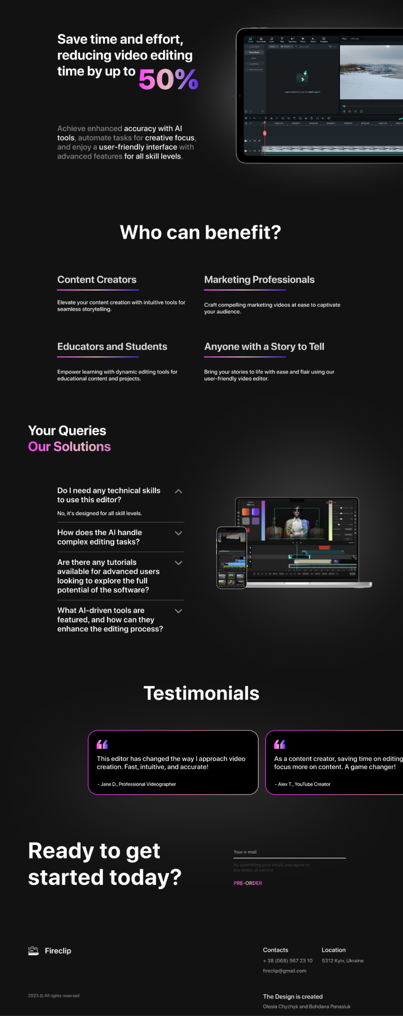 Hello Guys! Here is my new exploration for AI video editing. Landing Page Redesign for a startup. Feel free to give me some feedback. Press "L" if you love it. Send brief to: olesiachyzhyk@gmail.com